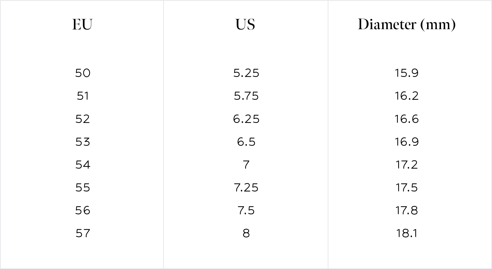 Our ring sizing follows European standards.